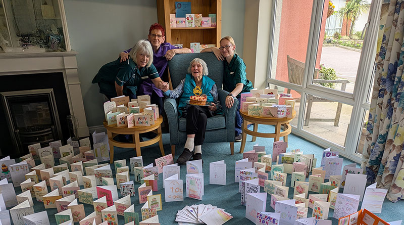 Kate Roberts a resident at Ritson Lodge Care Home received over 104 birthday cards on her 104th birthday.