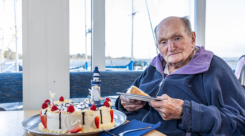 The birthday visit featured a lunch of fish and chips and a nautical-themed birthday cake, complete with lighthouse, specially baked by Belmore Lodge chefs.