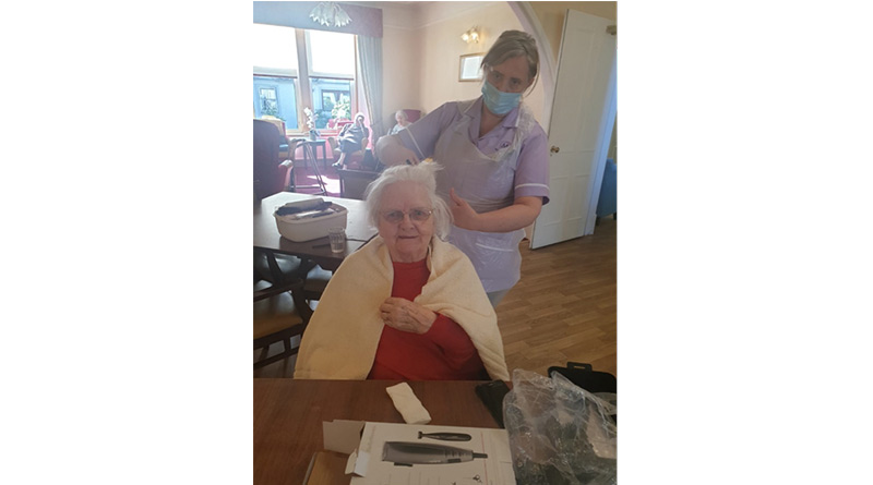 With hairdressers closed, the care team improvised with the equipment they had; organising a weekly salon day for those residents who needed a touch up.