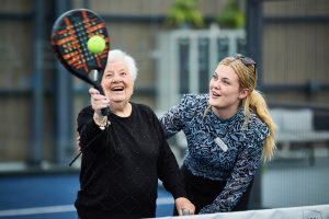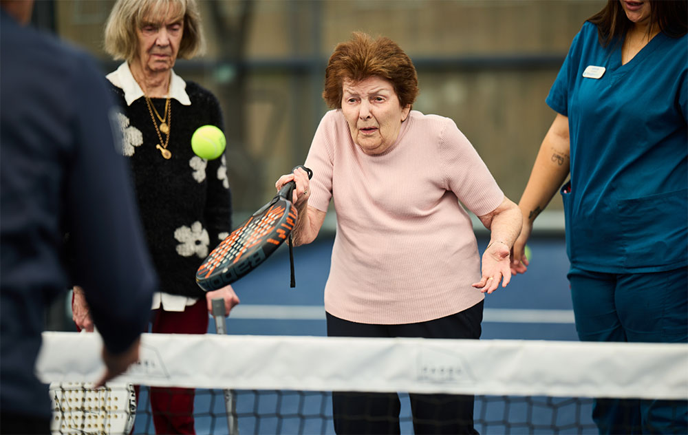 Five residents in their 80s living at Trafford Waters Care Home in TraffordCity, Manchester; are proving that age is no barrier to new experiences, as they stepped onto the padel court for the very first time.