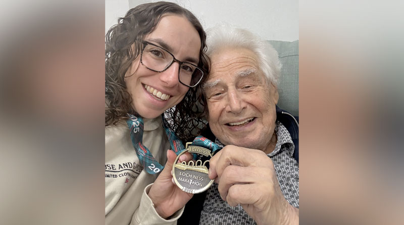 Hannah Masters, from Redbridge, has completed the Loch Ness Marathon in Scotland to thank our admiral nurses for the care they provide to her grandfather Cyril, 93, who has dementia.
