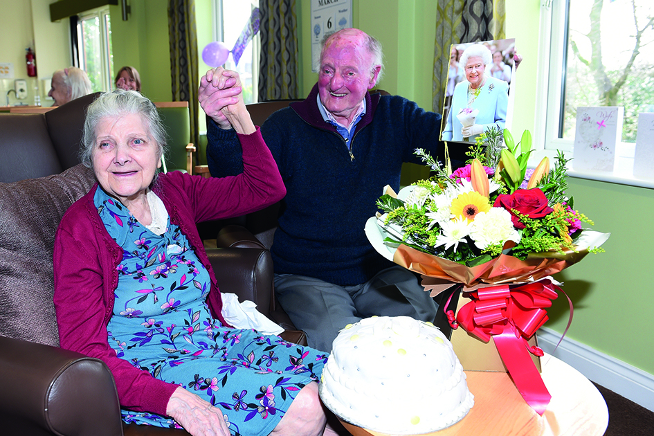 A card from the Queen topped the celebrations at a Lancashire care home as resident Margaret Dawson marked her platinum wedding anniversary.