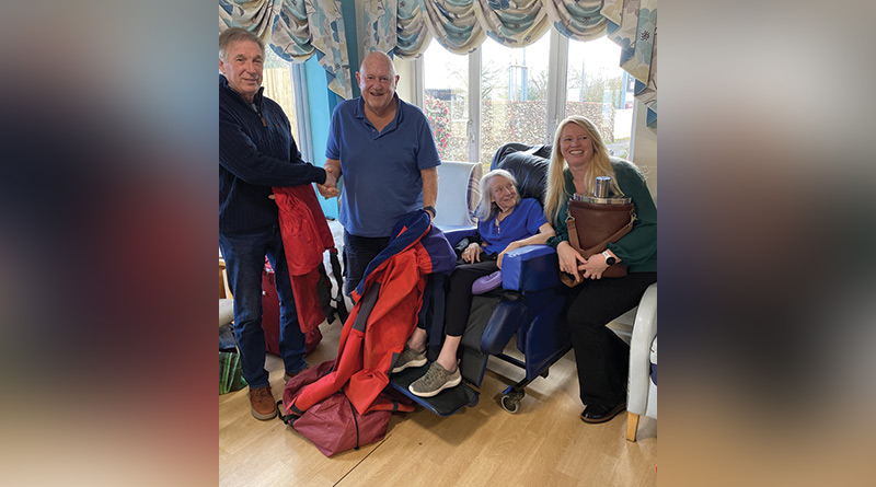 A retired yachtsman chose the dementia care home where his wife now lives, Camelot House and Lodge in Wellington, as the venue for a donation of specialist kit and clothing to the charity Wimbleball Sailability, which provides access to sailing programmes for those living with disability.