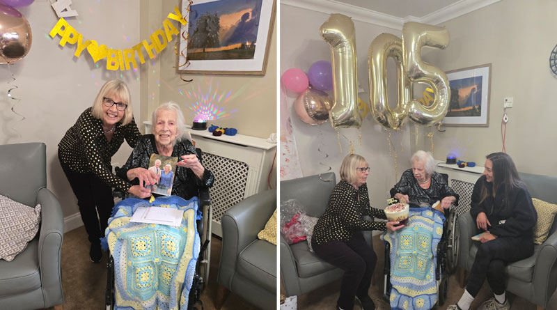 “Mum had a fantastic 105th birthday party, even though last week she swore she wasn’t going to one! There she was, dressed in sequins, telling stories of her adventurous life, singing, and enjoying her cider. Thank you to all the residents, relatives, Louisa our lovely singer, Jack Brock the pony, and most of all to the marvellous, kind, and caring staff at Windmill House for going above and beyond to make Mum’s day unforgettable, and, of course, to King Charles and Queen Camilla for their lovely card.”
